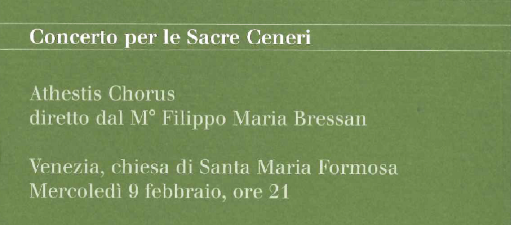La Fondazione Levi, in collaborazione con Chorus, ha organizzato un concerto per le Sacre Ceneri. Il concerto è stato eseguito dal Coro Athestis diretto da Filippo Maria Bressan.